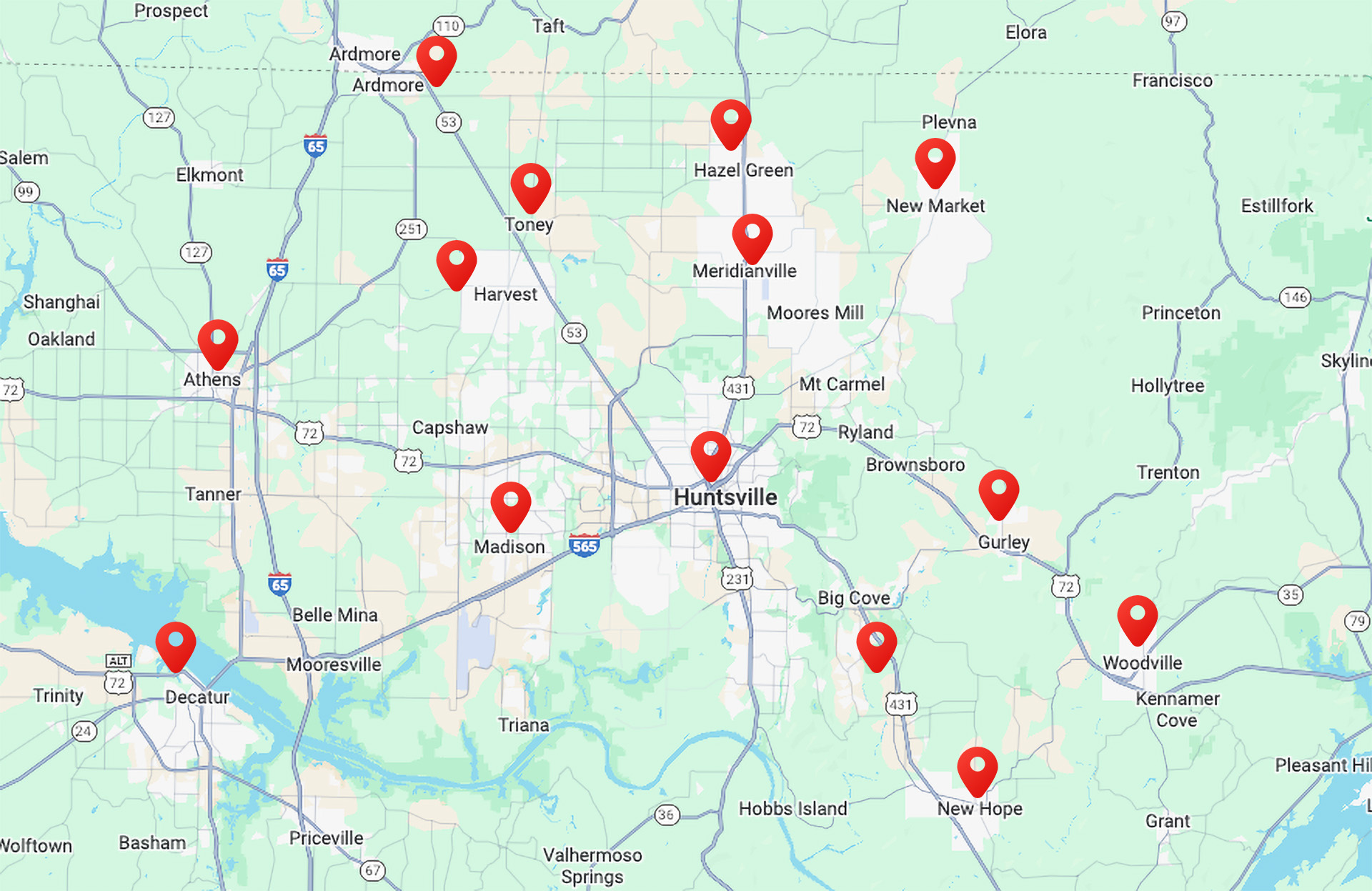 We proudly service the northern Alabama area, specifically Huntsville, Madison, Hampton Cove, Owens Cross Roads, Athens and Decatur areas.